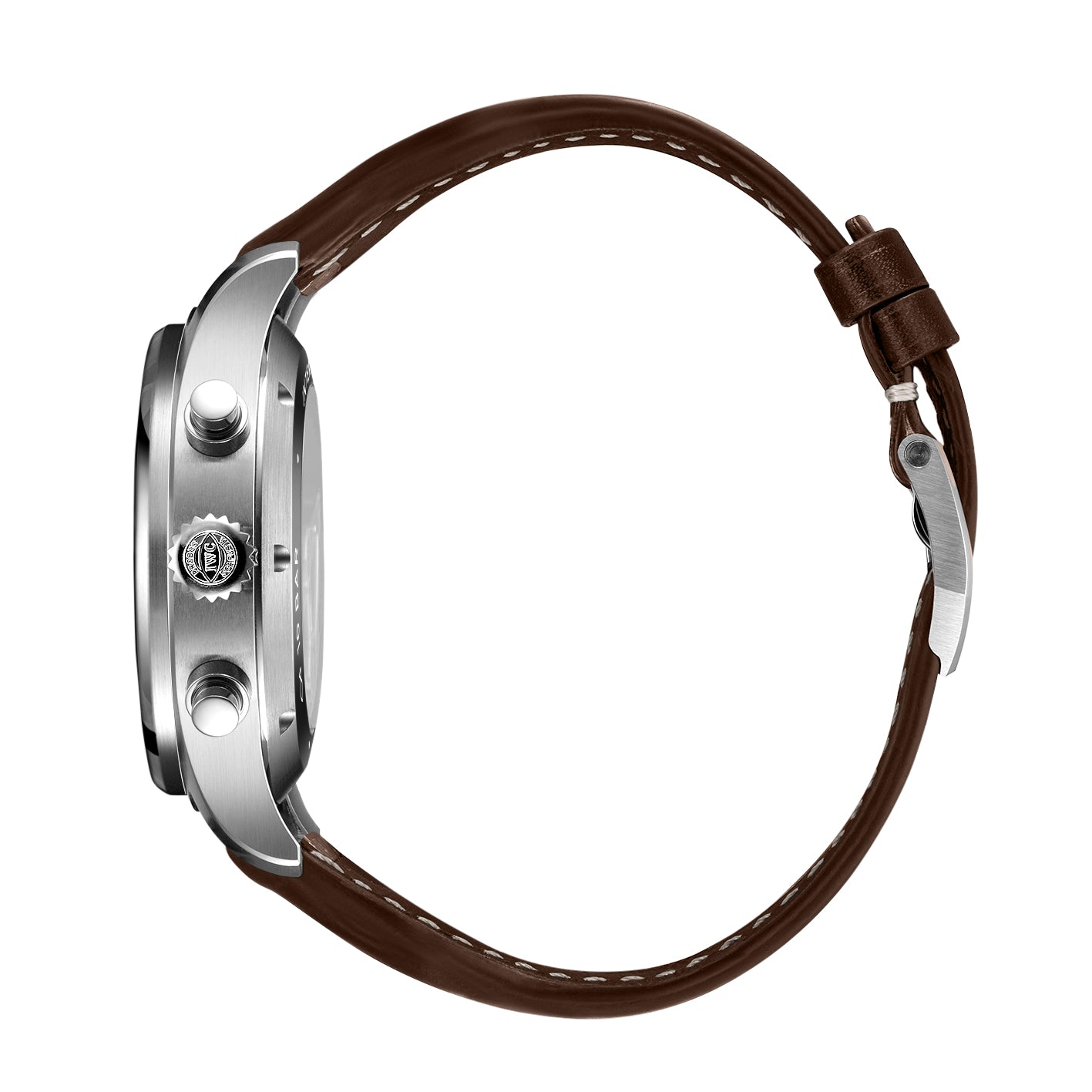 Highlights: This Pilot’s Watch Chronograph (ref. IW378005) features a stainless steel case with a diameter of 43mm, a green dial, and rhodium-plated hands. The high-contrast dial with large Arabic numerals and the triangle index marker at 12 o’clock has been designed in the style of an easy-to-read cockpit instrument. Thanks to luminescent elements, the time can be read at a glance, even at night, or in difficult visibility conditions. The IWC-manufactured 69385 caliber, a precise and robust chronograph movement in classic column-wheel design, enables measurement of stop or aggregate times of up to 12 hours. The hours are displayed on the counter at 9 o’clock, the minutes at 12 o’clock. The small second features a red hand and is located at 6 o’clock. The self-winding movement with a power reserve of 46 hours is visible through the sapphire glass back. Water-resistant to 10 bar, the chronograph is fitted on a brown calfskin strap with a pin buckle. Thanks to the integrated EasX-CHANGE® system, the strap can be easily changed without additional tools.